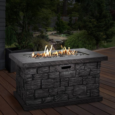 Check your appliance manual for required distances. 4.5 out of 5 stars 2,092. A fire pit can provide the cozy ambiance you are looking for at a fraction of the price. A outdoor fireplace that operates on propane allows the fireplace to be portable and it does not require the use of a chimney or direct vent. Has a circular design of natural fitted stones with a gray slate top.